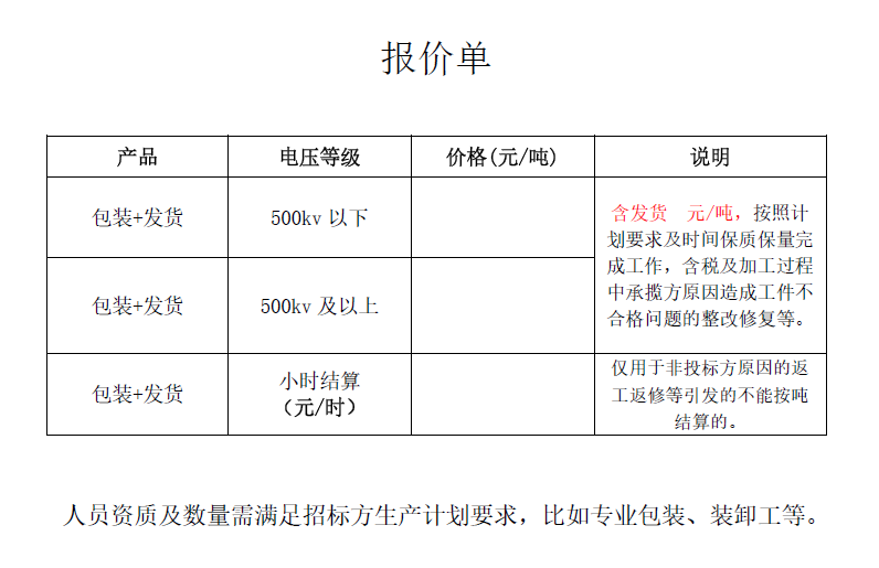 7、报价单格式附后。