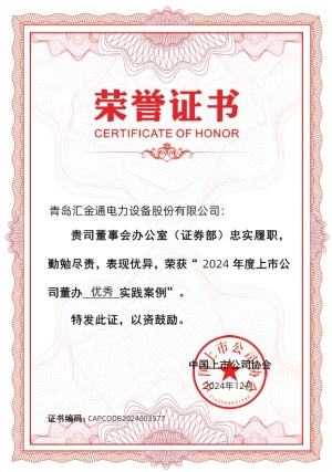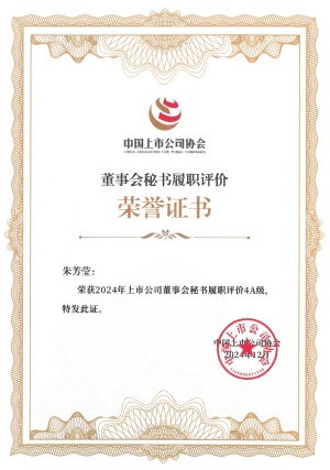公司董事会秘书荣获中国上市公司协会“2024上市公司董事会秘书履职评价”4A评级。